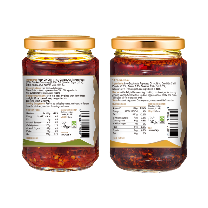 Our chilli sauce is renowned for its distinct, aromatic flavour; a slight smoky and nutty aftertaste which sets it apart from the rest. It’s a result of our special blend of Geographical Indication Qin chilli peppers, other spices and a 400 year old recipe with an ameliorated modern nourishing touch. Once picked up by the carrier, standard shipping transit time is 3-7 business days depending on your region. For international orders, please allow up to 30 days for processing and delivery.
